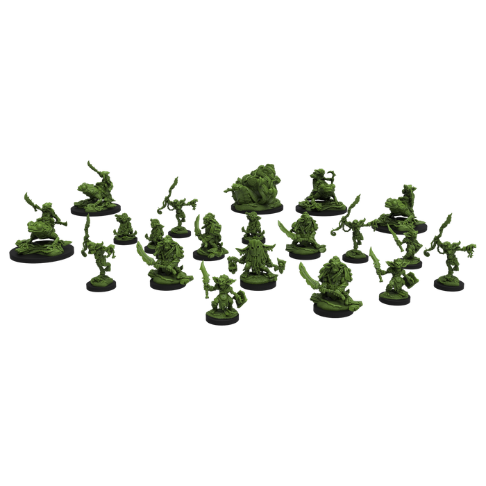 Climb into a treetop adventure with Village of the Goblin Chief, including 20 highly detailed, preassembled minis and a packed adventure book!