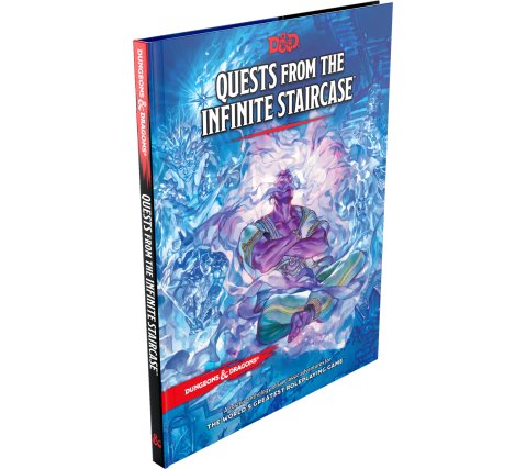 Quests from the Infinite Staircase embraces the magic of the most beloved Dungeons & Dragons adventures of all time. Your journey begins in the Infinite Staircase, a dreamlike expanse with doors leading to fantastical worlds, where you’ll meet Nafas, a noble genie who fulfills wishes with the help of valiant heroes—like you! As you explore what lies beyond each door, embark on timeless adventures and make memorable moments with your party. This handpicked collection contains 6 remastered first edition adventures, complete with striking settings and a lovable cast of characters. These unforgettable quests can be run individually or as a delightful campaign that takes characters from level 1 to 13.